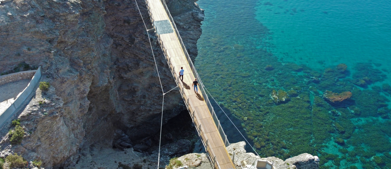 Se trata de la Pasarela Colgante de Jolúcar, que forma parte del Sendero de los Miradores y Acantilados, hacia el mirador del Peñón de Jolucar, que luego conduce al mirador El Hondurón y la playa de La Joya. Situada en Torrenueva Costa (Granada).